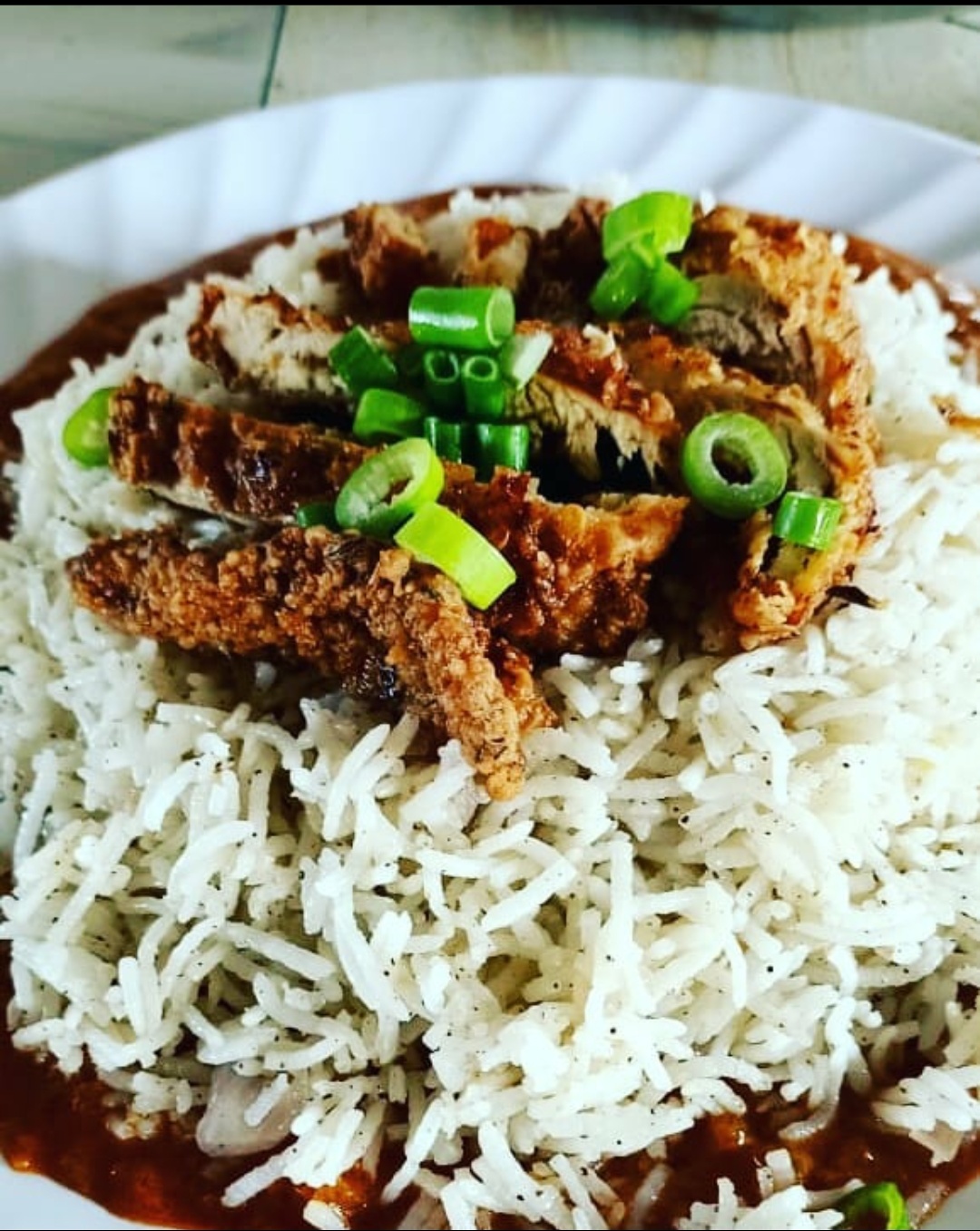 One of the best in our islands our crispy Chicken Boneless with yummy gravy and rice tossed in herbs