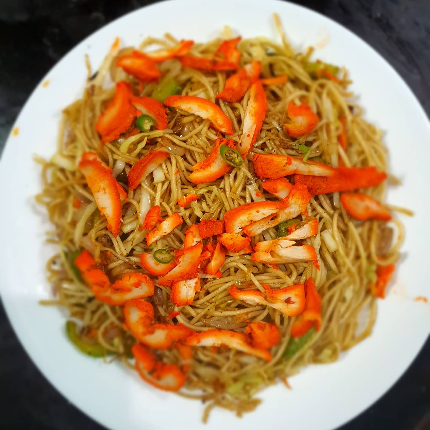Egg noodles with chilly chicken