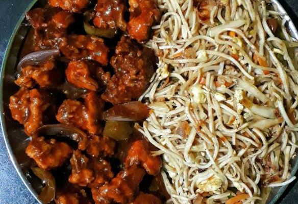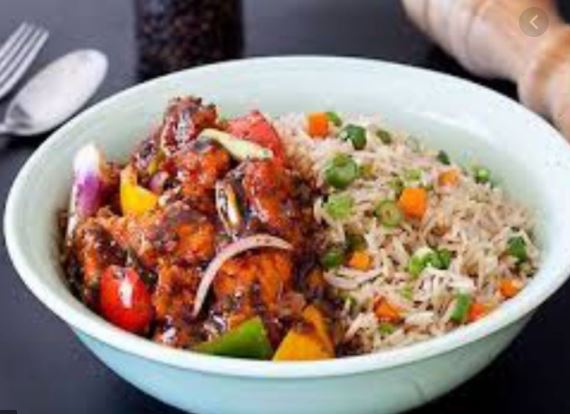 Egg fried rice with chilly chicken